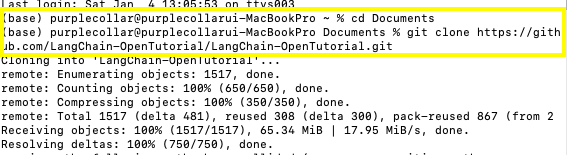 - 代码库将被克隆到当前目录下的 LangChain-OpenTutorial 文件夹中。